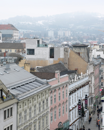 25.11.2019 Grünraum, Privatheit und Ruhe sind überzeugende Argumente für das Wohnen im freistehenden Einfamilienhaus. Doch lässt sich ein solcher Traum meist nur außerhalb der Stadtzentren verwirklichen. Die Bauherrschaft des Projekts Haus am Taubenmarkt hingegen fand einen geeigneten Bauplatz inmitten der Stadt Linz: auf dem fünften Obergeschoss eines prächtigen Gründerzeitgebäudes. Der Entwurf stammt von Hertl.Architekten aus Steyr. Das Team um Gernot Hertl setzte dem Bestand in der Linzer Fußgängerzone ein turmgleiches, eigenständiges Wohnhaus auf. Erschlossen wird es über das fünfte Geschoss des Altbaus, das mittels Aufzug erreichbar ist. Ein effektiv ausgenutztes, fließendes Raumgefüge prägt das Innere des neuen Eigenheims, das zwar im Sinne einer durchaus konventionellen Nutzung zoniert, aber kaum noch Hierarchien zeigt und ohne Gangflächen auskommt. Durch ein kleines begrüntes Atrium gelangt viel Licht in die Innenräume. In der ersten Ebene sind Bäder und Schlafräume untergebracht, in der zweiten eine Küchenzeile, deren Rückwand die Brüstung für die einläufige Treppe dient. Man kocht mit Blick auf die Türme der Linzer Innenstadt durch ein schmales Fensterband. Des Weiteren befinden... |