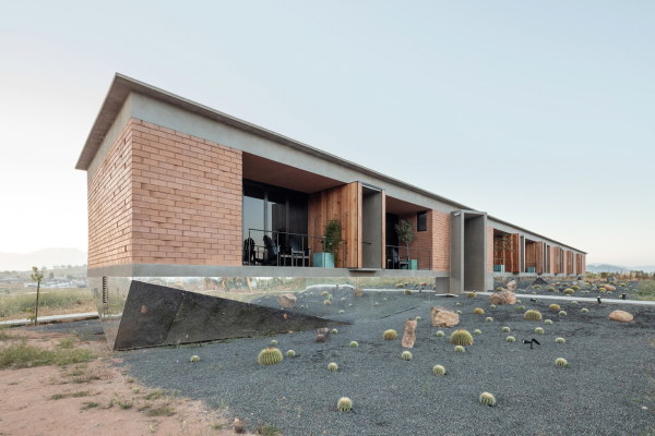 „Santulan“ ist Hindi und bedeutet Ausgeglichenheit. Das Santulan Bed & Breakfast liegt nahe der Kleinstadt Guadalupe im westmexikanischen Bundesstaat Baja California in einer eindrucksvollen Landschaft. Aufgrund ihres warmen Klimas ist die küstennahe Gegend, in der auch Wein angebaut wird, eine beliebte Ferienregion. Der vom Büro Santos Bolívar aus dem nahegelegenen Ensenada Baja entworfene Hotelbau nimmt Rücksicht auf den besonderen Charakter der weitläufigen Landschaft, die für die hier noch ansässige indigene Bevölkerung ein heiliger Ort ist. Mit der bewussten Entscheidung, die Raumvolumen zu fragmentieren, wolle man Respekt ausdrücken und Balance erzielen, ohne dabei in Ethnokitsch abzudriften, erklären die Architekten ihren Ansatz. Die Bauteile des B&B wurden entsprechend ihrer Funktionen auf mehrere Volumina aufgeteilt und über ein erhöhtes Wegenetz miteinander verbunden, das in seinem zentralen Kreuzungspunkt einen dreieckigen Pool umrahmt. Für die Besucher soll die fragmentierte Gestaltung einen Anreiz bieten, sich nach draußen zu begeben und die Landschaft wahrzunehmen. Hauptbaumaterial ist der sogenannte Ecoblock, der aus einem Gemisch von Erde und Ton besteht und mittels...