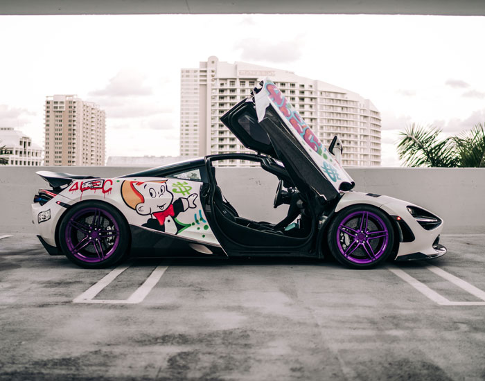 The post alec monopoly spray paints an exotic mclaren 720S during art basel miami beach appeared first on designboom | architecture & design magazine.