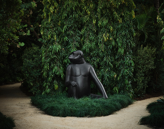 the immersive exhibition is set within the lush, beach-side tropical raleigh gardens in miami beach.