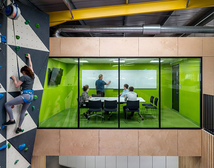 The post wmb studio completes a robotics company’s office with a climbing wall in cambridge appeared first on designboom | architecture & design magazine.