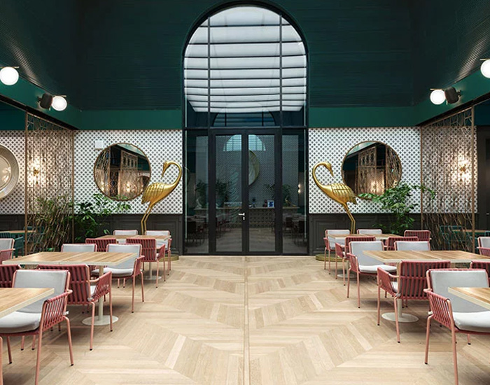 formed within a historical building dating back to 1896, the green hue that defines the space was inspired by zsolnay porcelain.