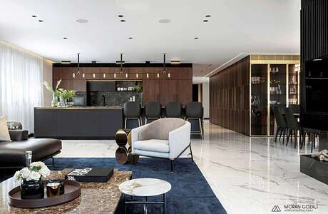 A duplex house in a prestigious Jerusalem project, situated on a mountainside overlooking picturesque mountainous views. The house, 300 sq.m in size, was bought by a well-known public figure, whose lifestyle and functional needs were taken into account, forming the personalized floor plan for this home.