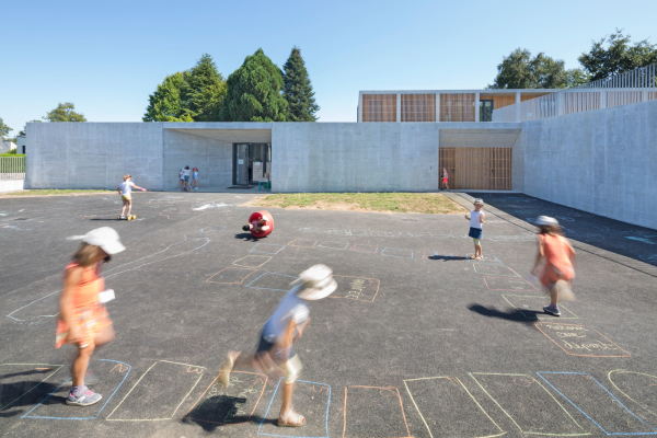 09.01.2020 Drei Klassenzimmer, dazu Räume für die nachmittägliche Freizeitgestaltung – das war die Bauaufgabe für das französische Büro Atelier 56S architectes aus Rennes. In Elven, einem bretonischen Städtchen westlich von Rennes und Nantes gelegen, galt es, das bestehende Grundschulgebäude sinnvoll zu ergänzen. Auf der anderen Seite des Pausenhofs, aber noch auf dem Grundstück der Schule, steht seit kurzem der 740 Quadratmeter große Neubau. Die beiden Bereiche Unterricht und Freizeit sind räumlich klar getrennt – hier half die Topografie des Geländes. Im unteren Teil, mit Anbindung an den öffentlich zugänglichen und bislang nur wenig genutzten Innenhof, liegt das Freizeitzentrum. In seiner reduzierten Erscheinung reiht es sich in eine ganze Riege französischer Freizeitzentren ein, die in den letzten Jahren wie Pilze aus dem Boden schossen. Auch wenn dieses speziell auf die Belange der Kinder der örtlichen Schule ausgerichtet ist. Oberhalb des Freizeitzentrums sind die drei neuen Unterrichtsräume angeordnet, die zum bestehenden Schulhof orientiert sind. Eine Verbindung zwischen oben und unten innerhalb des Gebäudes gibt es nicht. Der Neubau, der im Auftrag der Gemeinde und in Zusammenarbeit... |