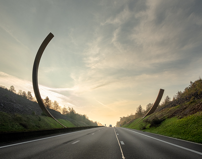 The post bernar venet frames belgian motorway in monumental corten steel l’arc majeur appeared first on designboom | architecture & design magazine.
