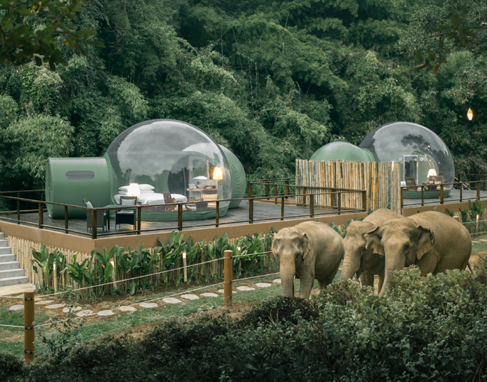 The post jungle bubbles at luxury resort in thailand let guests sleep alongside elephants appeared first on designboom | architecture & design magazine.