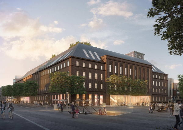 Mitten in der Bochumer Innenstadt gegenüber vom Rathaus steht seit mehreren Jahren ein riesiges Gebäude weitgehend leer. Das 1931 eröffnete Hauptpostamt, später Telekom-Gebäude, rund 6.000 Quadratmetern umfassend. Gemeinsam mit dem Rathaus bildet der Bau aus rotem Ziegel ein wichtiges städtebauliches Ensemble für Bochum. Die Stadt bezeichnet es gar als „zeitgeschichtliches Dokument der Großstadtwerdung während der Hochzeit der Schwerindustrie“. Historische Architektur, mitten in der Stadt, leer. Ein Problem, das viele Städte kennen. Wenn langjährige Mieter*innen die Innenstadt verlassen, bleiben fürs Stadtbild markante, aber eben leergezogene Hüllen stehen. Was also tun? In Bochum entschied sich die Stadt für einen nichtoffenen Realisierungswettbewerb. Unter dem Titel „Haus des Wissens“ soll der viergeschossige Bau mit erweitertem Dach zu einem Ort des Lernens umgebaut werden. Mit Zentralbibliothek, Volkshochschule und dem Sitz des Bochumer Hochschulverbands. Der Innenhof, aktuell ein Parkplatz, unter dem sich ein Luftschutzbunker befindet, soll überdacht und eine 2.000 Quadratmeter große Markthalle mit rund 60 Ständen werden. Für eine solche Halle hatten sich die Bochumer 2017 auf...
