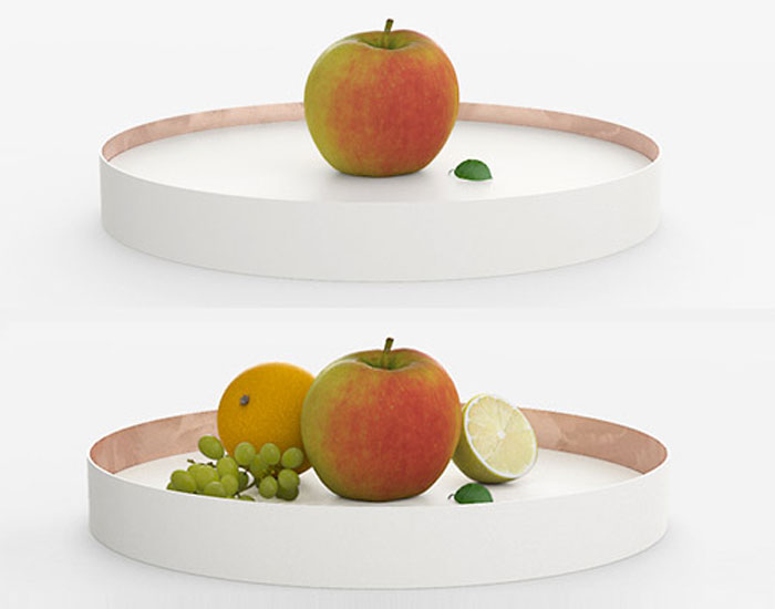 appearing at first as a simple white surface, the tray is is designed to make people wonder what it's for.