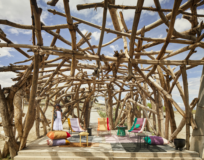 the brand presents new furniture, carpets and accessories, hand-manufactured by small enterprises.