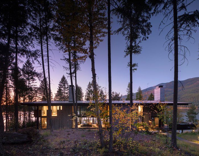 olson kundig’s lakeside ‘dragonfly’ house overlooks the pine forests of northern montana