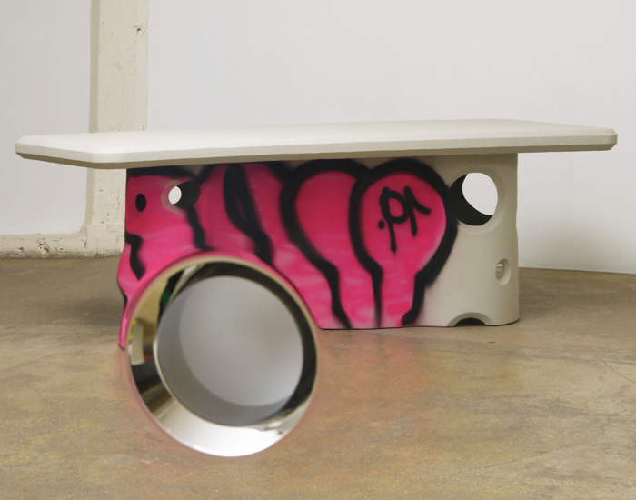 The post virgil abloh brings an urban language to galerie kreo with graffiti-sprayed, concrete furniture appeared first on designboom | architecture & design magazine.