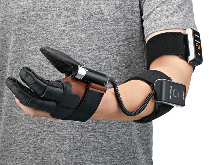 the product prototype, named neomano, is a 'smart glove' designed to help patients rehabilitate a hand after a stroke.