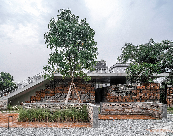 with the reuse of crushed and broken bricks and tiles, the structure conveys its history in a new form.