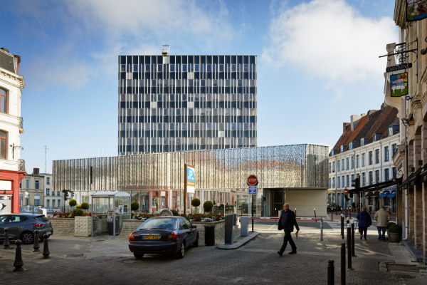 29.01.2020 Ein Schwert an der Seite, die Waage in der Hand und die Augen mit einem Tuch verbunden steht die Göttin der Gerechtigkeit da, um ihr Urteil zu fällen. Mit Bedacht abzuwägen, mit der nötigen Härte durchzugreifen, aber immer gerecht, ohne Ansehen der Person: So sachlich und nüchtern die Urteile von Justitia auch sein sollen, für die Gerichtsgebäude selbst – das zeigt das Beispiel Gelsenkirchen wo man auf größtmögliche Schlichtheit setzte – muss dieser Grundsatz nicht zwangsläufig gelten. Und so verpasste das Pariser Büro Hamonic+Masson & Associés dem Justizzentrum im nordfranzösischen Douai, 40 Kilometer südlich von Lille gelegen, einen silbrig glänzenden Anbau. Eine Fassade aus perforierten Stahlblechen im Obergeschoss und Justitia trägt Glitzerkleid. 1.800 Quadratmeter groß und 7,6 Millionen Euro schwer ist der im öffentlichen Auftrag der Stadt realisierte Bau, in dem zwei neue Gerichtssäle untergebracht sind. Er ergänzt den Bestand mit dem markanten Turm aus den 1970er Jahren. Das eigentliche Gerichtsgebäude aber ist noch viel älter, schließlich stammt der sogenannte Pollinchove-Palast, in dem einst das flämische Parlament tagte, aus dem Jahr 1714. 1978 wurde dieser dann um den... |