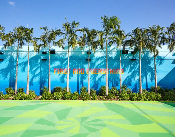 muralist jessy nite has transformed the store’s basketball court into a vibrant NIKE-themed football field.