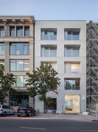 04.02.2020 Kreuzberg könnte vermutlich doppelt so groß sein, es gäbe angesichts der ständig steigenden Nachfrage trotzdem nicht genug bezahlbare Ateliers. Und seit der Eröffnung der Prinzessinnengärten 2009 und des Aufbau-Hauses 2011 hat sich auch die Gegend zwischen Moritz- und Wassertorplatz rapide entwickelt. Weil inzwischen selbst Fabrikkomplexe wie die Aqua-Höfe, trotz umfangreicher Erweiterung, die Nachfrage nicht mehr fassen können, drückt sich die Veränderung nun in Neubauten aus. So haben BCO Architekten (Berlin) 2019 in der Ritterstraße 8, nur ein paar hundert Meter von den Aqua-Höfen entfernt, zwei fünfgeschossige Neubauten für eine kleine Baugemeinschaft fertiggestellt. Hier liegt neben dem denkmalgeschützten Pelikan-Haus (Baujahr 1905, Architekt Klaus Berndt, gehört derzeit Nicolas Berggruen) ein 12 x 70 Meter tiefes Grundstück, das lange Zeit nur von einer eingeschossigen Gewerbebaracke belegt war. „Fast alle Mitglieder der Baugemeinschaft waren vorher bereits in der Nachbarschaft ansässig“, sagt Lisa Wameling von BCO. So konnten die Bauherr*innen das Projekt mit guten Ortskenntnissen und genau definierten Raumwünschen entwickeln. Von der im Zweiten Weltkrieg zerstörten... |