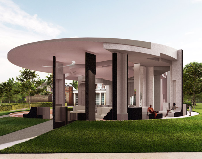 using both contemporary and traditional building techniques, the shapes of the pavilion are created from a process of addition, superimposition, subtraction, and splicing of architectural forms.