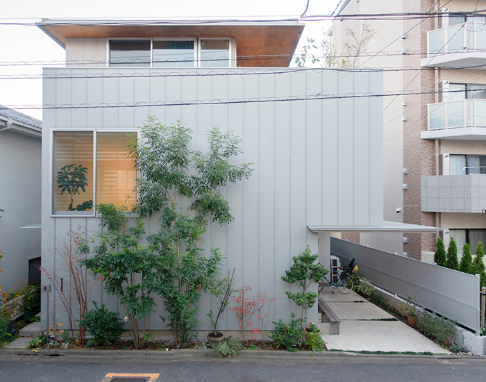 in ship architecture’s town house in ikegami, the alley garden also serves as the approach to the property, leading to the large first floor with a 4800 mm height.