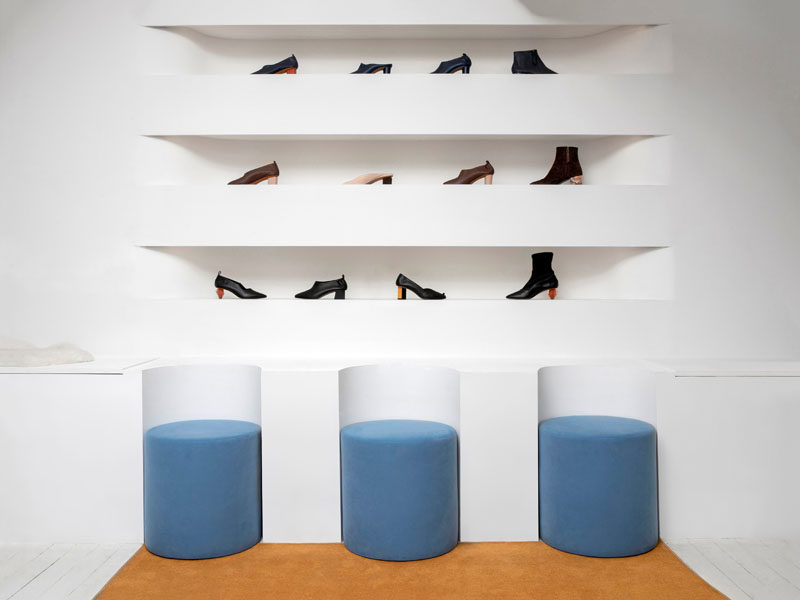 Design Detail – Half-Circle Cut Out Spaces Were Designed For Stools To Fit Into The Displays In This Shoe Showroom