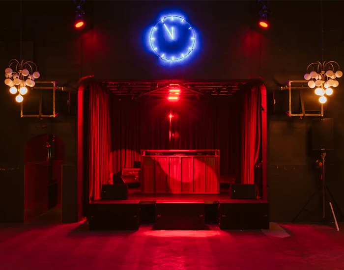 the existing 1930s building has been transformed into a mysterious and eclectic nightclub using contemporary shapes, colors and loud music.