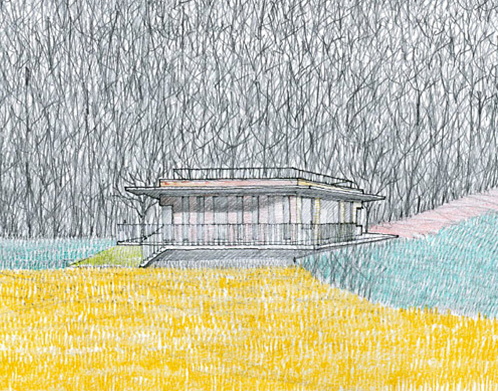 built between a forest, a mountain and a field of barley, the design tried to leave the surrounding nature as untouched as possible.