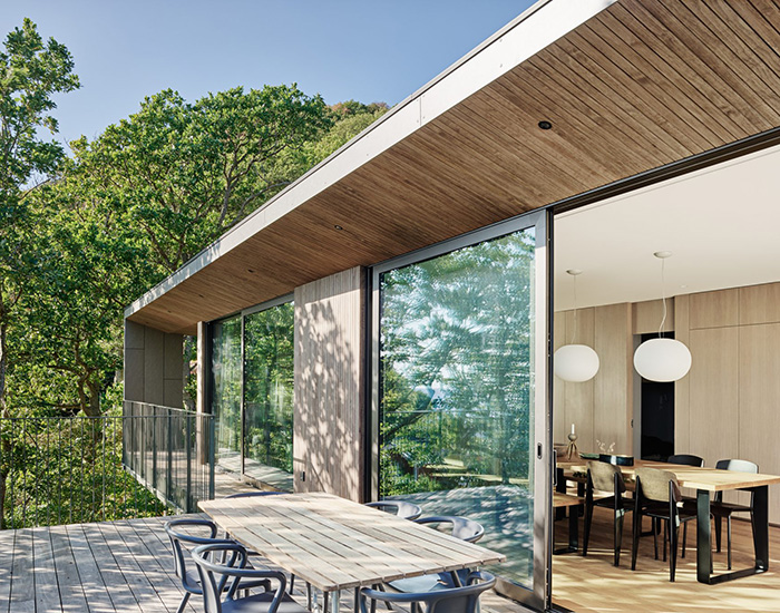 this elevated position not only distances it from the adjacent street and neighbors, but amplifies the natural, green views.