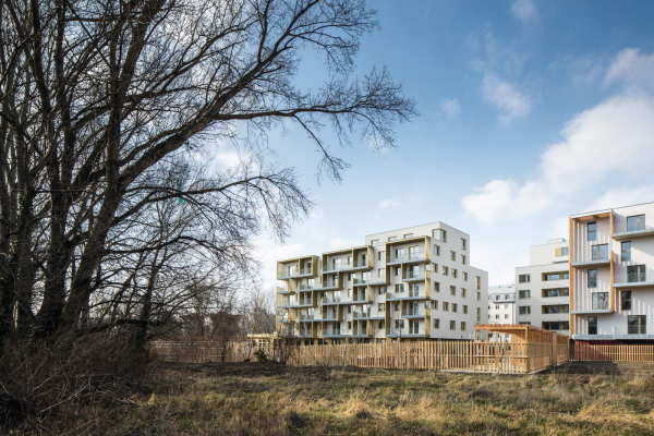 Die Frage "Wie wohnen im Alter?" wird in unserer zunehmend individualisierten Gesellschaft immer wichtiger. Vor diesem Hintergrund haben sich die Wiener Büros von trans_city| Christian Aulinger, Mark Gilbert in Zusammenarbeit mit einzueins Architektur zum Ziel gesetzt, unterschiedlichen Bedürfnissen und Lebensformen Platz zu bieten und Orte zu schaffen, die Menschen verbinden sollen. Ihr Projekt zwei+plus mit insgesamt 140 geförderten Wohnungen ging als Sieger aus einem 2014 ausgelobten Bauträgerwettbewerb hervor. Es bietet von seiner architektonischen Gestaltung her die Möglichkeit, generationenübergreifende Beziehungen zu leben und neue soziale Netzwerke aufzubauen. "Verwandte" unterschiedlicher Generationen bekommen bei zwei+plus die Möglichkeit, in räumlicher Nähe und individuell zu wohnen. Die Verwandschaft kann eine Familien- aber auch eine Wahlverwandschaft sein, wie die Architekten betonen. Wohnungen werden jeweils paarweise vergeben. Diesen "Tandem-Haushalten" erlauben verschiedene Grundrisstypen dann zwei Formen von Wohnpartnerschaften. Entweder funktioniert jede Wohneinheit für sich allein und die Bewohner profitieren von der direkten Nachbarschaft im Haus...