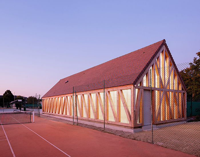 The post lemoal lemoal architectes adds glowing timber structure to tennis club in france appeared first on designboom | architecture & design magazine.