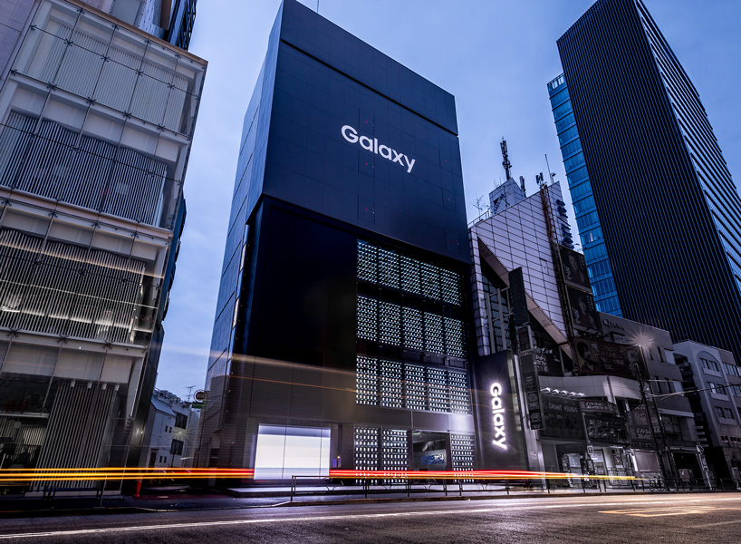 the facade titled 'media surface' illuminates the new vision of the galaxy brand.